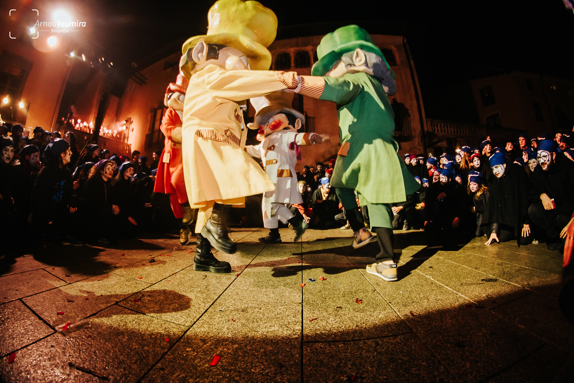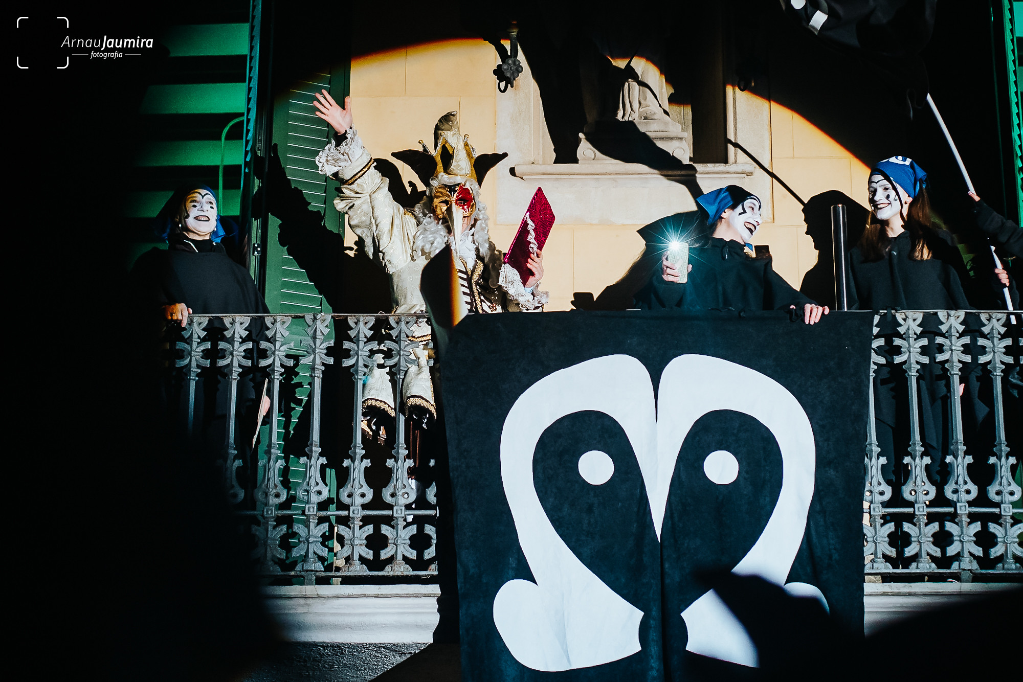 La vetllada comença a la plaça de la Vila, on Sa Majestat Carnestoltes, des del balcó de l’ajuntament, llegeix el pregó davant de tots els súbdits. Seguidament, una cercavila desfila pel centre del poble fins a la plaça Vella, on té lloc el ritual.